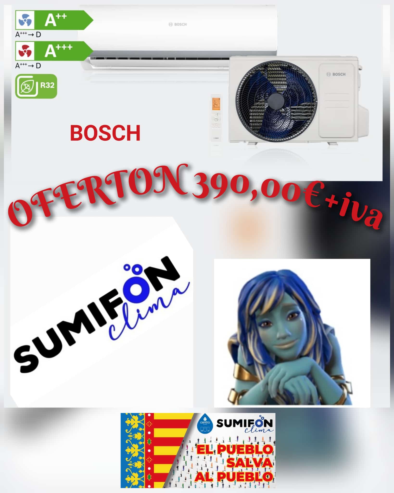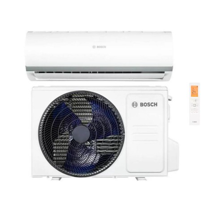 Aire acondicionado Inverter de 3000 frigorías BOSCH Climate 2000 – SET 35 WE CON 3000 FRIGORIAS , conjunto mono-split mural 1×1 con bomba de calor, de 3,5 kW de potencia frigorífica y de 3,8 kW de potencia calorífica. De diseño innovador, alta calidad y garantía del Grupo Bosch y de alta eficiencia energética. Cuenta con tecnología Inverter que proporciona un funcionamiento silencioso y permite un gran ahorro energético. Incluye un mando a distancia que permite el manejo de la unidad por parte de usuario. Tiene unas dimensiones para su unidad exterior de 495 mm x 720 mm x 270 mm y unas dimensiones para su unidad interior de 285 mm x 805 mm x 194 mm.