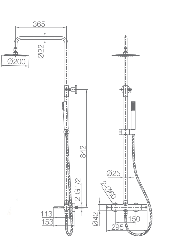• Esta es una columna de ducha con rociador y ducha de mano.