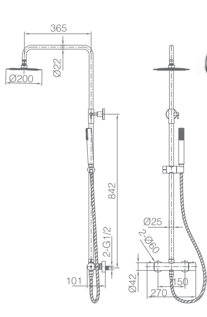 Mango de ducha redondo de 1 posición.