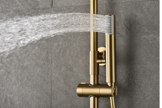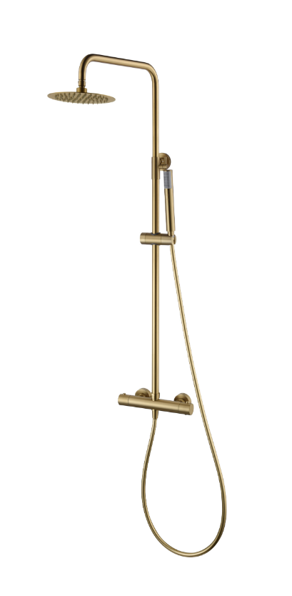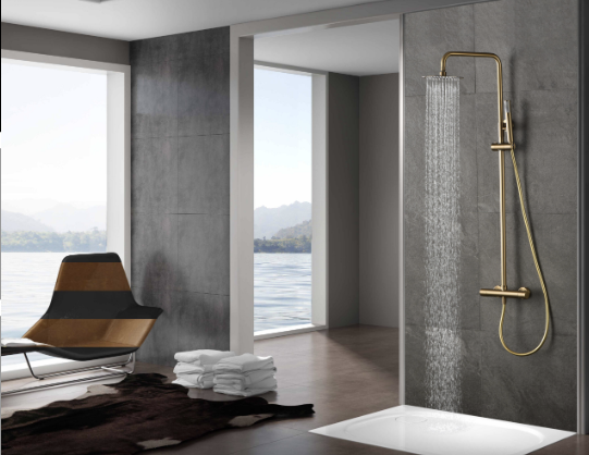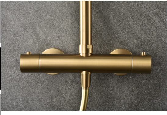 Grifería termostática de latón acabado oro cepillado (PVD).