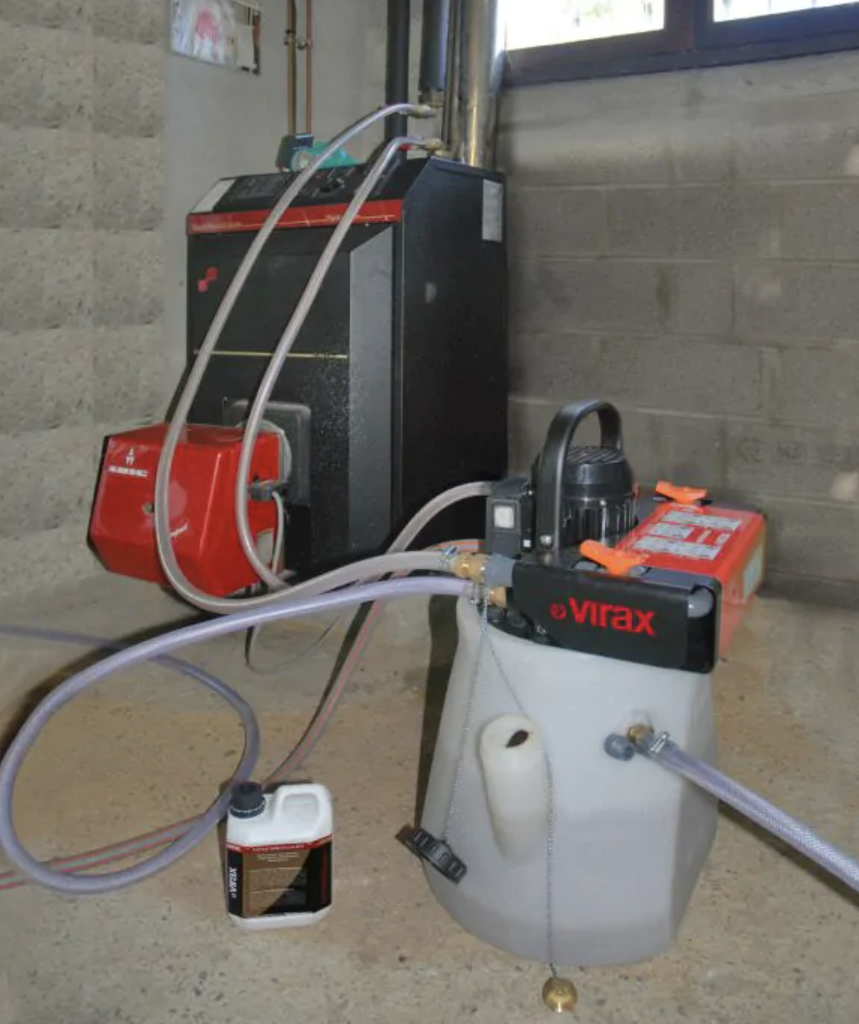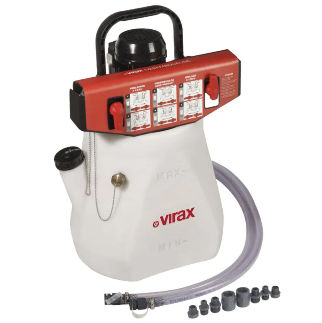 El añadido de aditivos Virax es indispensable para optimizar la acción de la bomba desenlodadora y de la bomba desincrustadora. Estos aditivos son específicos en función de la limpieza a efectuar. Su objetivo: restablecer una circulación correcta en la instalación para una mejor eficacia.