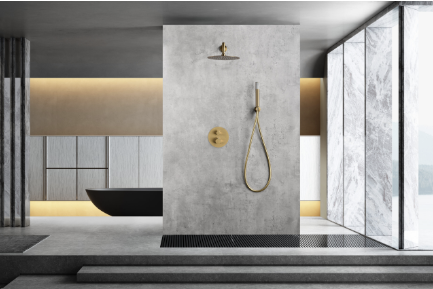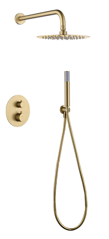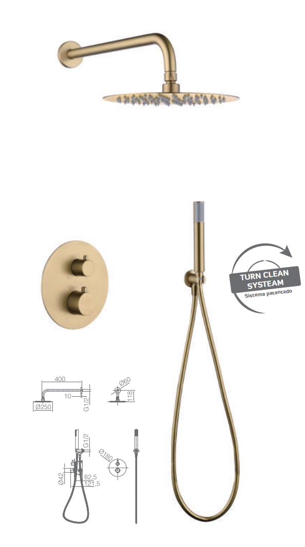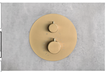 Grifería termostática de latón oro cepillado (PVD) de 2 vías.