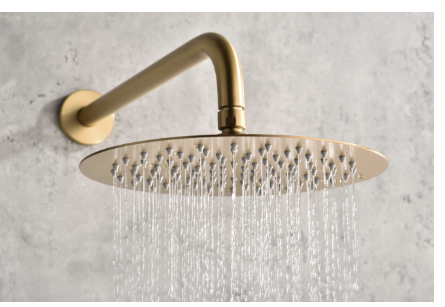 Rociador de acero inox. S.304 Ø25cm, extraplano, oro cepillado (PVD) y antical.