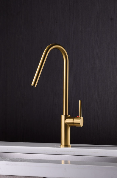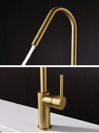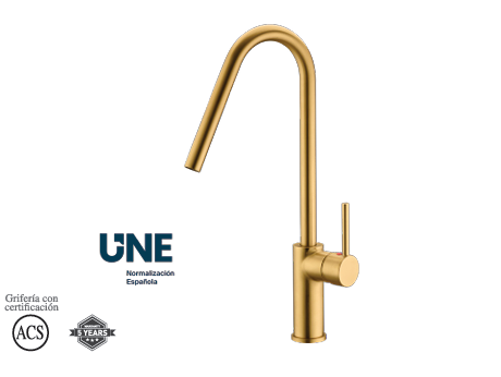 Fabricado con cuerpo de latón de alta calidad, este grifo garantiza una gran resistencia al uso diario, ofreciendo durabilidad y un excelente rendimiento durante años. Su acabado en oro cepillado proporciona un toque decorativo muy valorado en cocinas de diseño moderno y contemporáneo.