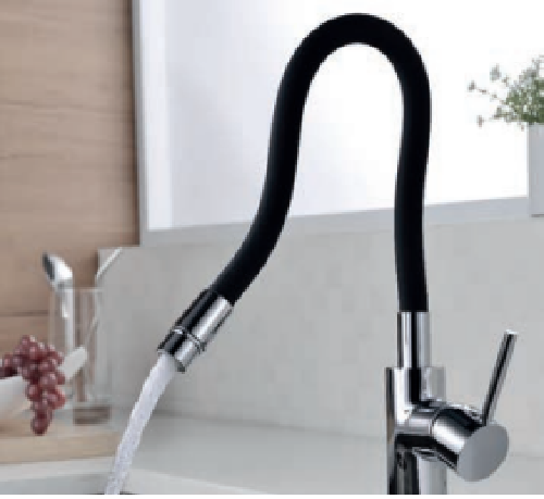 • Grifo de cocina monomando con cuerpo flexible.