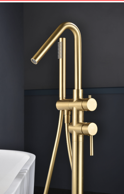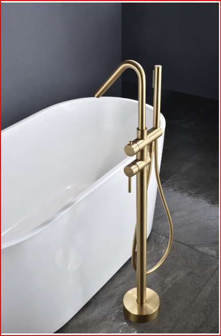GRIFERÍA EXENTA DE BAÑERA MONOMANDO ORO CEPILLADO SERIE CÓRCEGA