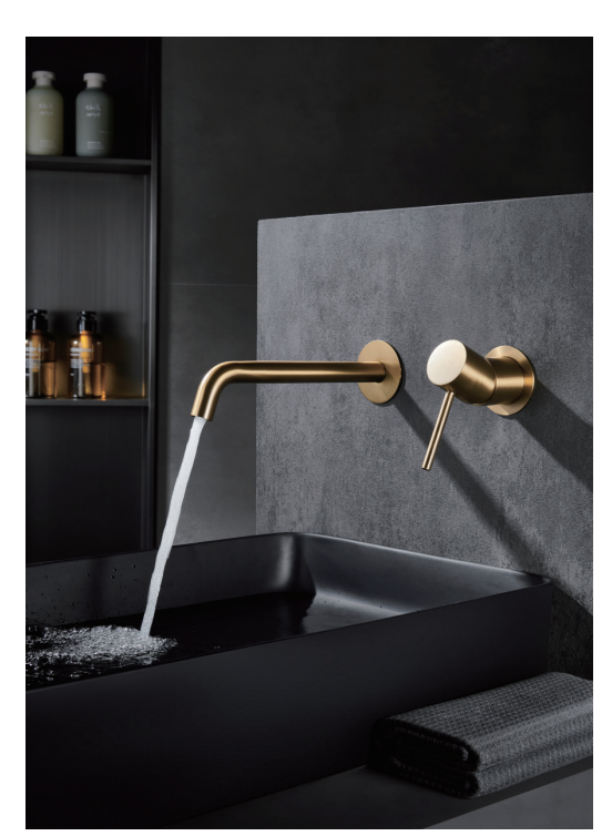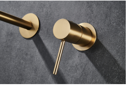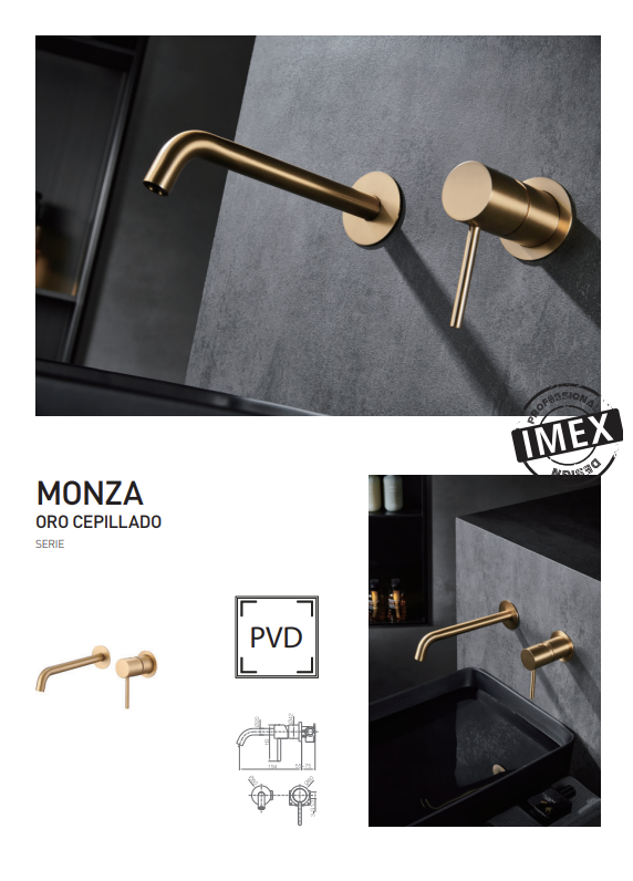Descripción del producto – Grifo de lavabo monomando y empotrado sin caja de registro en latón con acabado oro cepillado Monza Imex