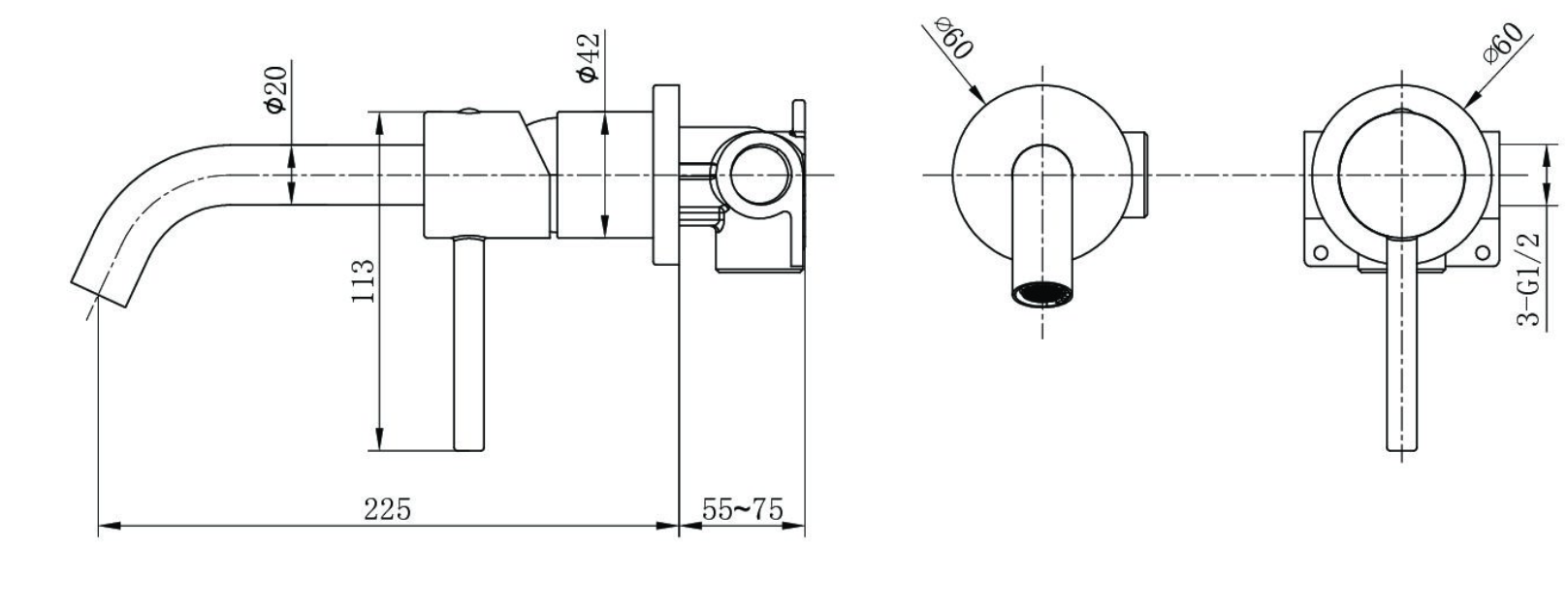 • Tanto el grifo como el monomando miden 60 mm de diámetro frontal.