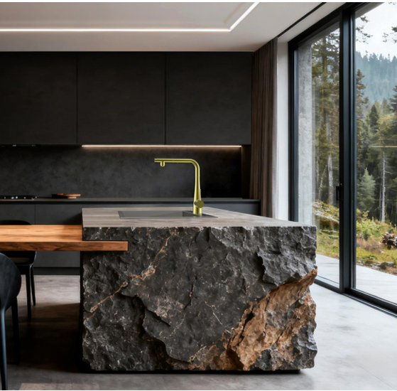 Su elegante acabado en oro cepillado aporta un estilo sofisticado y moderno, muy utilizado en cocinas de diseño contemporáneo y decoraciones de alta gama.