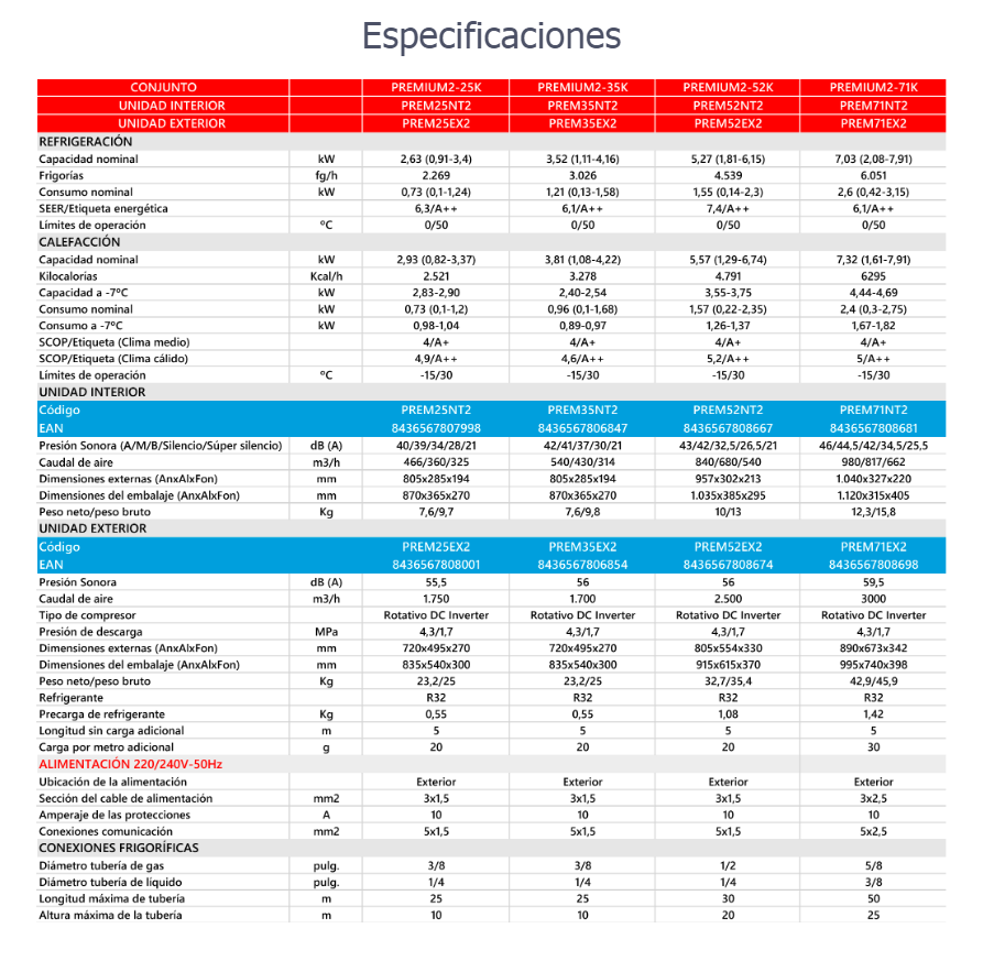 CARACTERÍSTICAS TÉCNICAS DE SPLIT JOHNSON CON UNA POTENCIA FRIGORÍFICA DE 3.010 FRIGORIAS