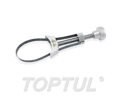 NÚMERO DE ARTÍCULO: JDAZ65B0 Llave para filtros tipo banda, ajustable girando la perilla Correa de acero con cuerpo de aleación de aluminio de servicio pesado y liviano y perilla de control fundida a presión Elimina los filtros con un riesgo mínimo de daño Ideal para el reemplazo de filtros de aceite de automóviles Adecuado para operación con una sola mano en áreas de acceso restringido