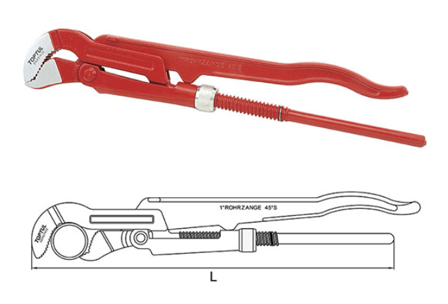 Llave para tubos modelo sueco de 45° con mordaza en forma de S