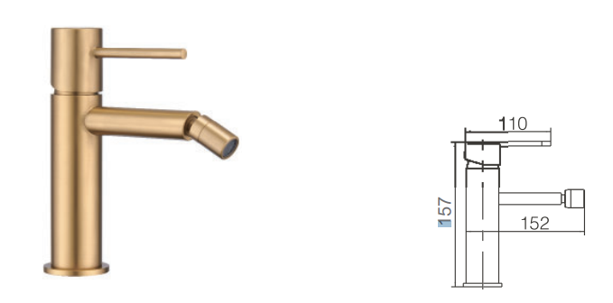 Cuerpo grifería en latón acabado Oro cepillado (PVD).