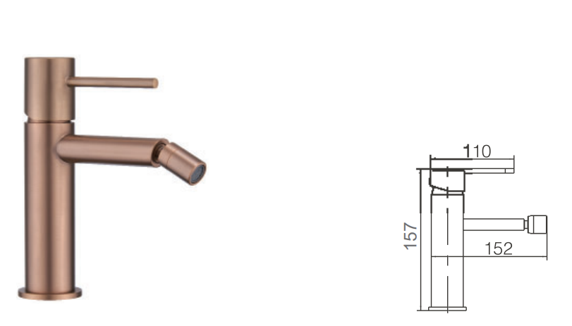 Descripción del producto – Grifo monomando de bidé con cartucho de 25 mm fabricado en latón con acabado oro rosa cepillado Monza Imex