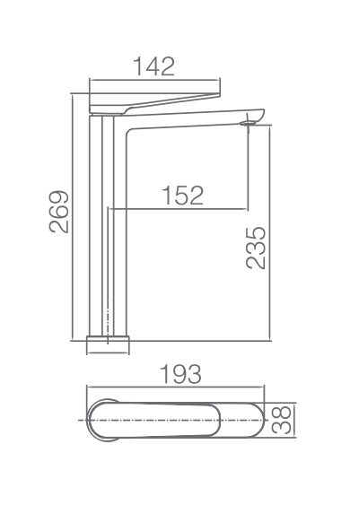 MONOMANDO DE LAVABO CAÑO ALTO BLANCO MATE SERIE DINAMARCA