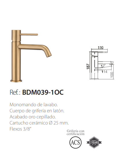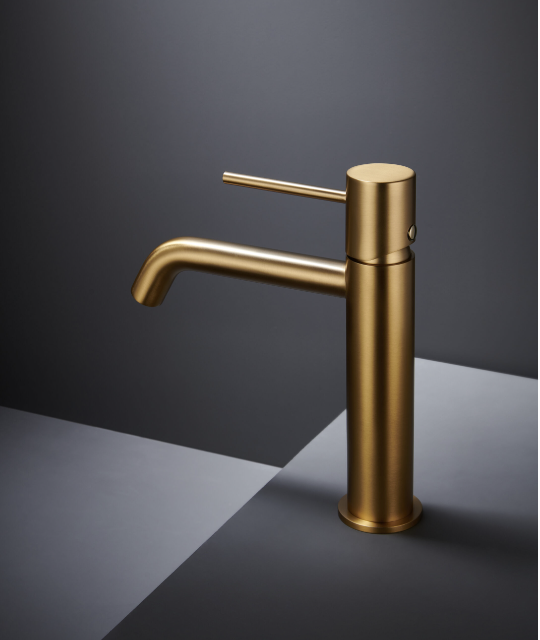 Cuerpo grifería en latón acabado Oro cepillado (PVD).