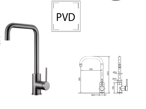 Fabricado en latón BLACK GUN METAL de alta resistencia, garantiza una larga vida útil, resistencia a la corrosión y un acabado brillante que aporta elegancia a cualquier cocina.