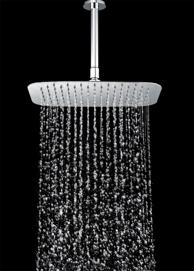 • Rociador de ducha mural cuadrado con los bordes curvados y extraplano.