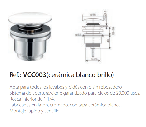 • Apta para todos los lavabos y bidés, con o sin rebosadero.